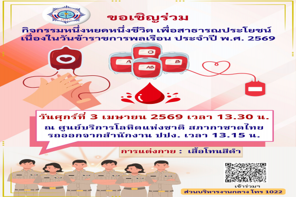 กิจกรรมหนึ่งหยุดหนึ่งชีวิต เพื่อสาธารณประโยชน์ เนื่องในวันข้าราชการพลเรือน ประจำปี พ.ศ. 2569