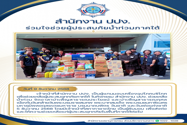 สำนักงาน ปปง. ช่วยเหลือน้ำท่วมภาคใต้ เพื่อน้อมรำลึกในพระมหากรุณาธิคุณและแสดงความจงรักภักดี พระบาทสมเด็จพระบรมชนกาธิเบศร มหาภูมิพลอดุลยเดชมหาราชาบรมนาถบพิตร