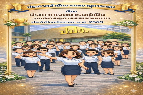 ประกาศสำนักงานเลขานุการกรม เรื่อง ประกาศเจตนารมณ์เป็นองค์กรคุณธรรมต้นแบบ ประจำปีงบประมาณ พ.ศ. 2569